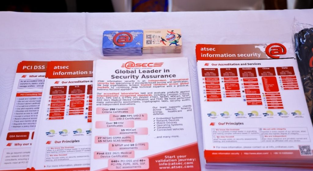 会议期间,atsec 团队在B5展位与众多参会嘉宾展开交流。来访者包括来自整车厂商、一级供应商、认证机构及技术供应商的安全工程师。 展位交流话题以信息安全为核心,涵盖车联网信息安全、支付卡行业数据安全(PCI DSS)、渗透测试在汽车领域的应用等方向。与业界同仁展开启发式观点碰撞与深入探讨,充分展现了atsec将自身数十年经验带入这一快速发展的新兴领域所创造的独特价值。